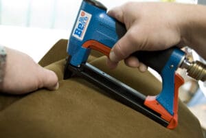 This BeA 71/16-421 air upholstery staple gun is light but powerful and fires 71 series staples 6-16mm. The low air consumption, long service life and ease of maintenance make it a real cost saver. The ergonomic design and the integrated silencer make it the ideal tool for industrial applications. Made in Germany. In our opinion the BeA 71/16-421 is the finest air upholstery staple gun currently available on the UK market. 1 Year BeA warranty.