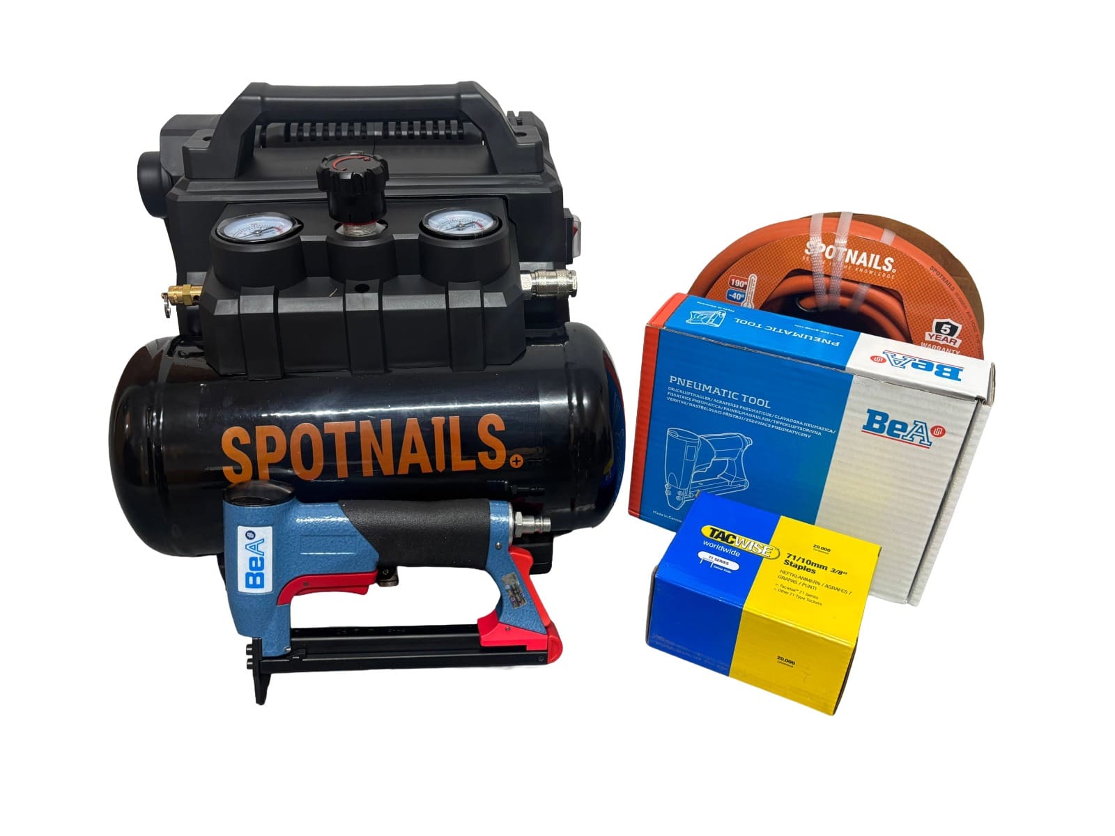 This BeA 71 upholstery stapler & compressor kit (240V) is ideal for DIY, hobby & professional upholstery projects. This kit is simple to set up. Fires 71 series upholstery staples 6-16mm. All items in this kit are supplied with a 1 Year warranty.