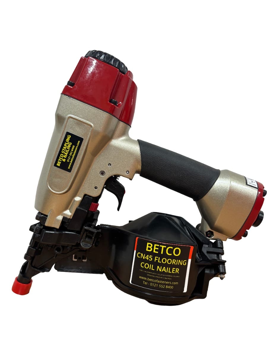 This Betco CN45 air flooring coil nailer is ideal for large flooring contractors. This tool is very fast, reliable and it fires Spotnails plastic collated flooring coil nails 19-22mm which are perfect for securely fixing hardboard & plywood for sub-floor preparation. Features on the Betco CN45 include a rubber comfort grip, easily adjustable nail depth control and safety trigger system to prevent accidental firing. 1 Year Betco warranty.