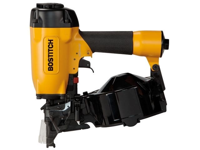 This Bostitch IC50-1-E industrial air coil nailer is a lightweight and compact tool that has been designed to fire both 15° wire collated flat & 16° wire collated conical (dome) coil nails 25- 50mm in length. Ideal for manufacturing pallets, sheds, fencing & nailing timber cladding. Features on the Bostitch IC50-1-E include a contact safety trigger, nail depth control, debris guard & adjustable exhaust. Ideal for sheds, fencing, pallets, packing cases, construction & timber cladding etc. 1 Year Bostitch warranty.