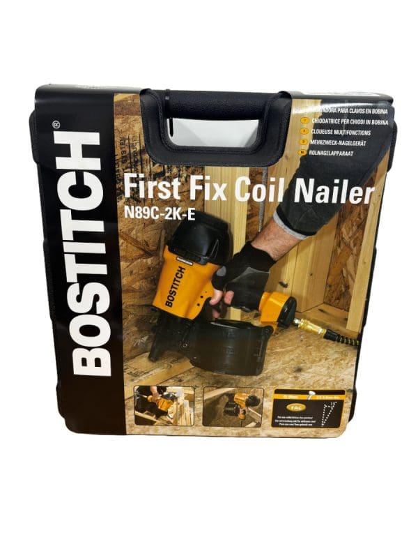 This Bostitch N89C-2K-E industrial air coil nailer is an extremely tough & reliable tool. Features on the N89C-2K-E include a nail depth control, non marking tip, rubber comfort grip, magnesium housing, 360° adjustable exhaust & sequential (single shot only) safety trigger. Fires 2.50 to 3.10mm gauge wire collated coil nails 50-90mm in length. Suitable applications include timber framing & construction. Supplied in a heavy duty carry case. 1 Year Bostitch warranty.