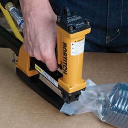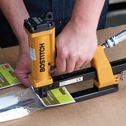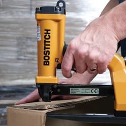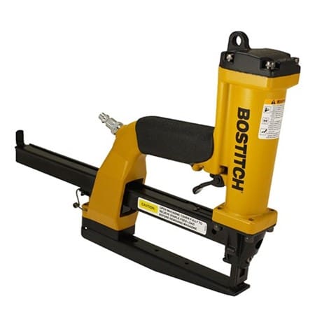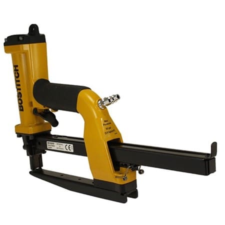 This Bostitch P51-10B pneumatic stapling plier fires Bostitch SB103020 staples 10-15mm. Ideal for stapling carton trays/lids, die cut inserts, end caps & pallet boxes etc. The powerful shuttle blade provides pre-compression prior and during the stapling operation giving a strong, tight closure without breaking the corrugated surface. It has a 6″ x 1″ high throat which allows flexibility of staple placement and limits interference from obstacles such as box flanges. Penetrates and securely fastens up to 2 x double wall corrugated board or 4 x single wall corrugated board. 1 Year Bostitch warranty.