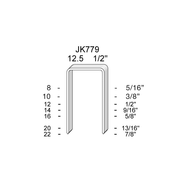 Josef Kihlberg JK779-14mm galvanised staples (5000 per box). Fits JK20T779, JK20T779L, JK20T779L22, JK20V779L & JK20V779L22.