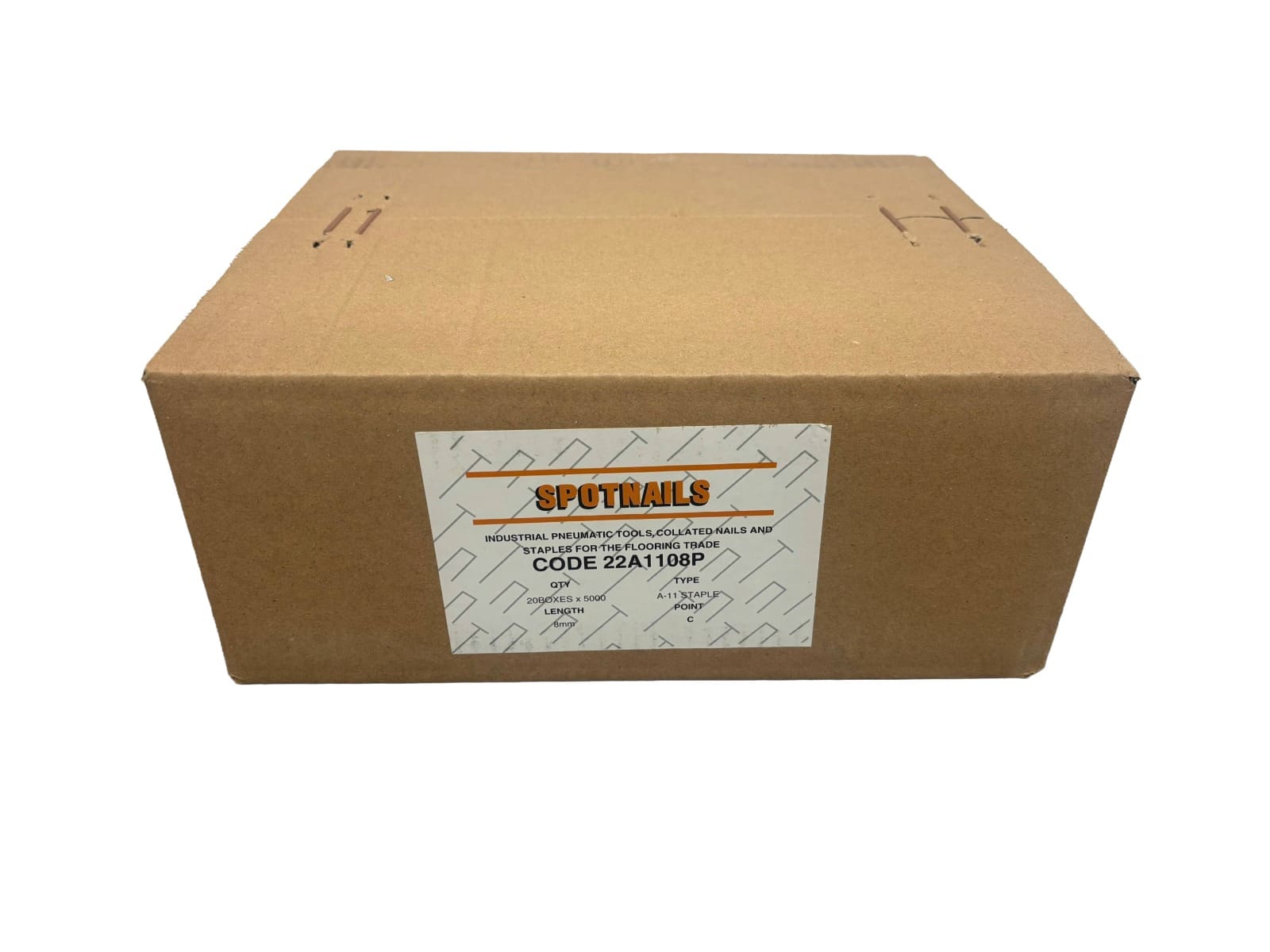 Spotnails A11/8mm hammer tacker flooring staples 140/8mm (20 boxes x 5,000). Popular with carpet fitters for fixing underlay. For use in the Spotnails SM11, Tacwise A11, Tacwise A54, Rapid R11, Rapid R211, Arrow HT50, Stanley PHT-150 & Stanley PHT-350 hammer tackers.