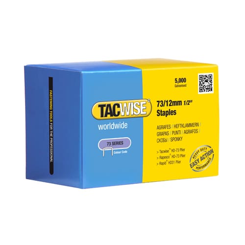 Tacwise 73/12mm galvanised staples (5,000). These heavy duty staples are made of very strong wire for top quality penetration. Specially designed for the Rapid HD31, Rapesco HD-73 and all other hand stapling pliers taking 73 series staples.